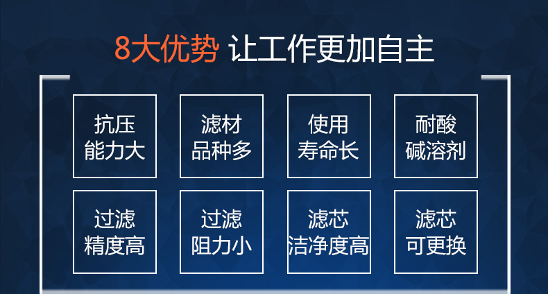 1、可承受較高的過濾壓力,能有效除去液體中的懸浮物、鐵銹等。