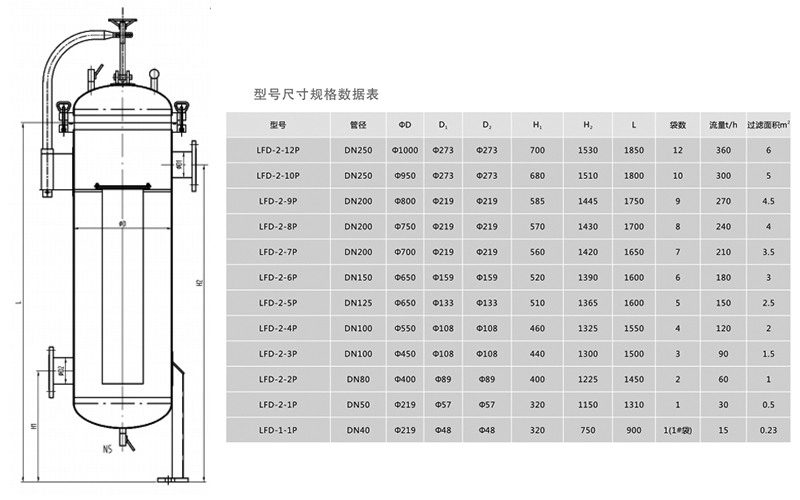 主要由三部分組成:過濾容器、支承網籃和過濾袋;是新鄉市不朽情緣特股份有限公司研發的一種新型的過濾系統,液體由入口流進,經濾袋過濾后從出口流出,雜質被攔截在濾袋中濾出顆粒雜質被截留在過濾袋內,完成過濾過程。為了保持過濾器高效暢通和過濾精度以及確保下游液體不被污染,運行一段時間后應停機,打開濾器端蓋,把截留物和濾袋一起取出,更換新的濾袋,更換周期視實際情況而定。LFD系列不銹鋼袋式過濾器是根據配用濾袋大小分為1、2、3、4號袋濾器。按濾器含袋數分為單袋式、雙袋式和多袋式;