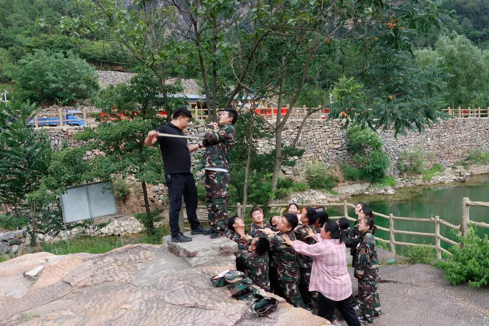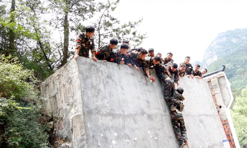 在教練的指導(dǎo)下,先后進(jìn)行了“信任背摔”、“盲人方陣”、“高空斷橋”、“畢業(yè)墻”等訓(xùn)練項(xiàng)目,其中壓軸的“畢業(yè)墻”項(xiàng)目將本次拓訓(xùn)推向了高潮,在不借用任何外力和道具的情況下,70名新戰(zhàn)友依靠團(tuán)隊(duì)協(xié)作的力量僅僅耗時(shí)13分08秒,徒手攀登4.2米高墻全員通關(guān),挑戰(zhàn)成功!