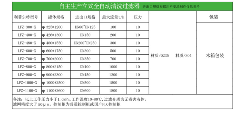 重力雜質刷式自清洗過濾器選型規格表